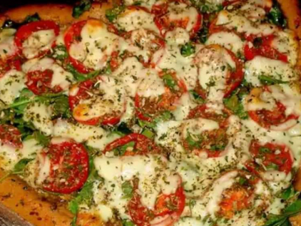 • Place the baking dish in the preheated oven and bake for 45-50 minutes, or until the top is golden brown and a toothpick inserted into the center of the batter comes out clean.
