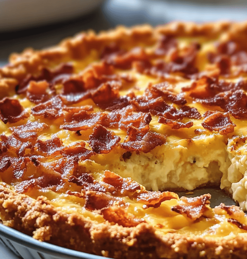 Follow these simple steps to create a perfect Bacon and Cheese Quiche with Hashbrown Crust: