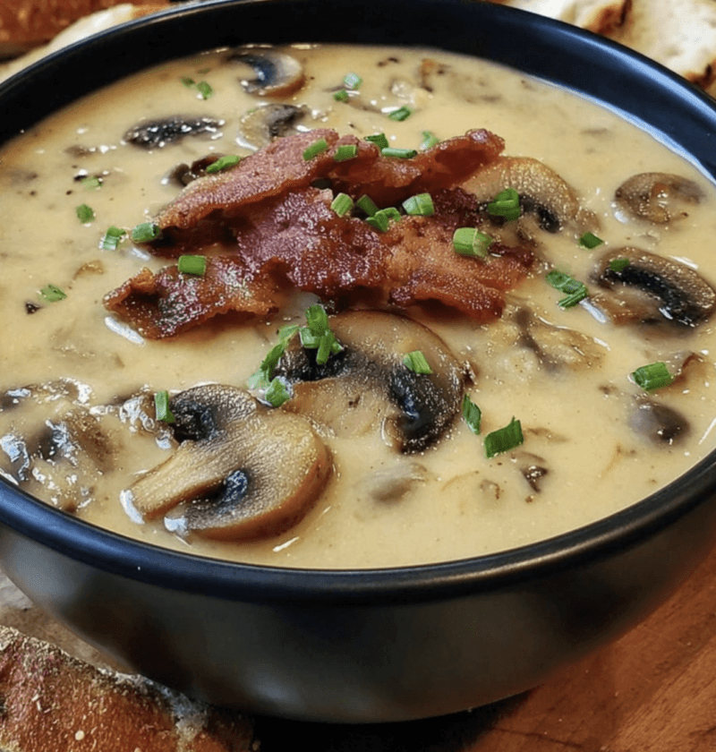 With a rich and creamy broth, tender mushrooms, crispy bacon, and gooey melted Swiss cheese, this soup is a flavor explosion that will leave you wanting seconds. The blend of savory ingredients creates a soup that is both familiar and unique, making it a standout dish for family dinners or gatherings with friends.
