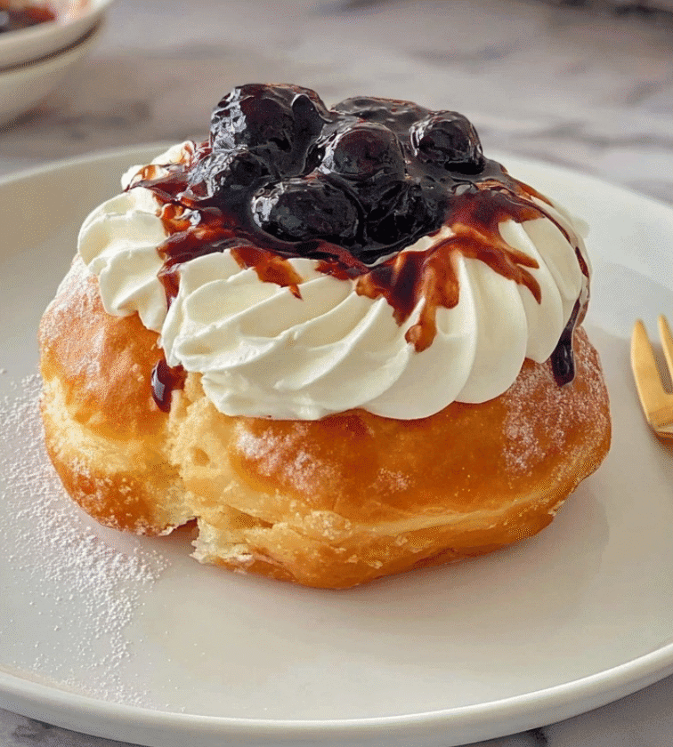 Baked Papanasi is a traditional Romanian dessert featuring a warm, fluffy pastry filled with rich cheese and topped with a dollop of sour cream. Its delightful combination of creamy cheese filling and crisp pastry shell makes it a standout dish in Romanian cuisine.
