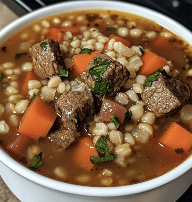 Ladle the beef barley soup into bowls and serve hot. Garnish with fresh herbs, such as parsley or thyme, if desired. This soup pairs well with crusty bread or a side salad for a complete and satisfying meal.