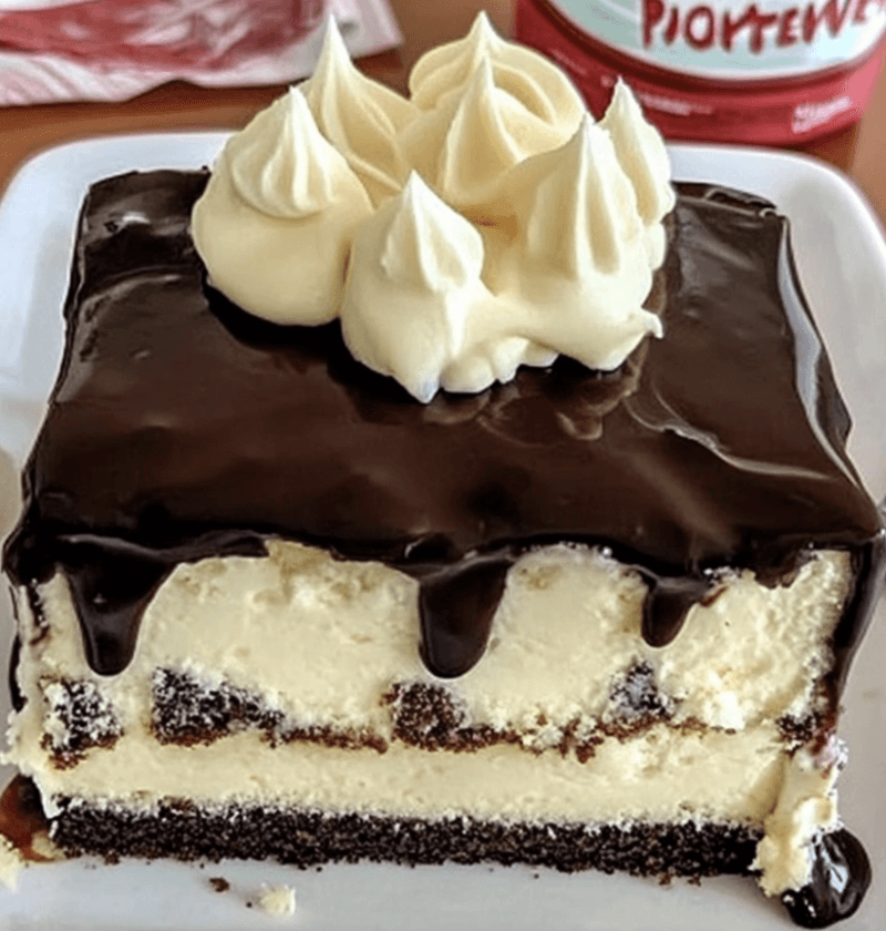 Once chilled, slice the cake into squares and serve. You can garnish each piece with a dollop of whipped cream or a sprinkle of cocoa powder for an extra touch.