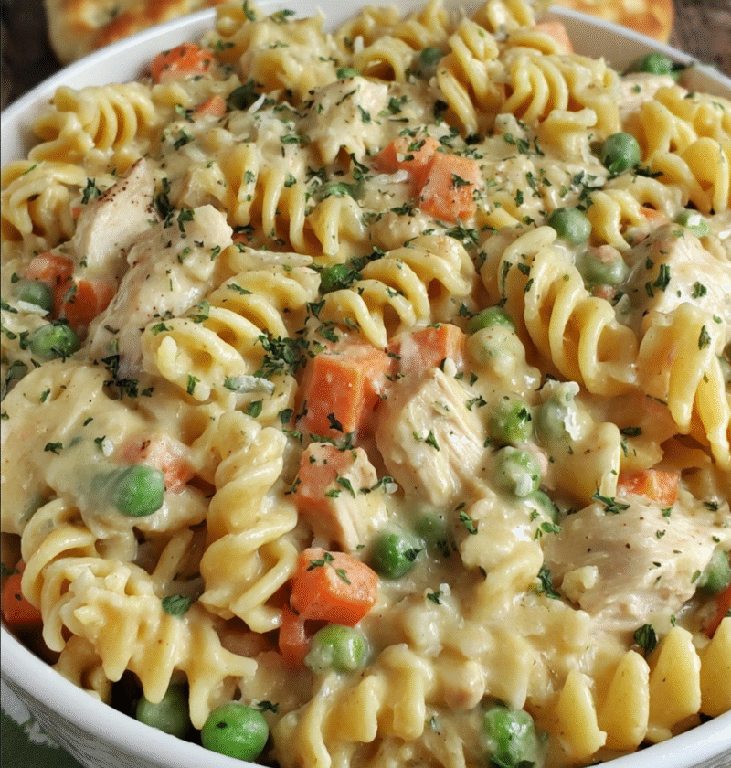 Chicken Pot Pie Pasta offers a delightful twist on a classic comfort food, bringing together the best elements of two beloved dishes in a single, satisfying meal. Whether you’re cooking for a cozy family dinner or entertaining guests, this recipe is sure to impress with its creamy texture, flavorful ingredients, and ease of preparation. So why not give this recipe a try and experience the comforting goodness of Chicken Pot Pie Pasta for yourself?