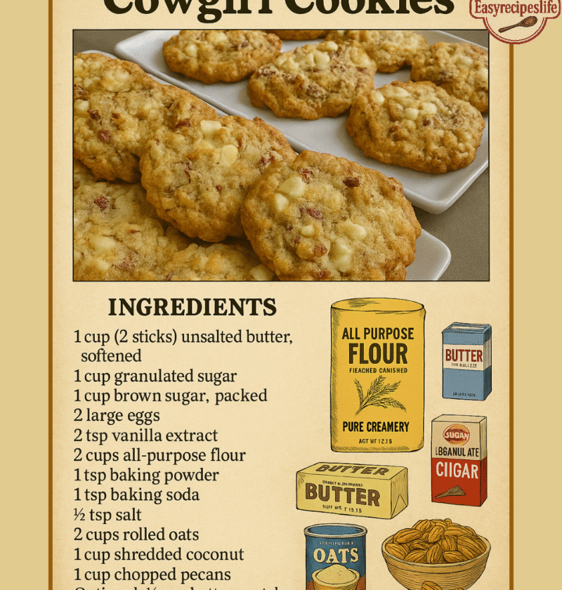 Cowgirl Cookies are a delightful treat that brings a taste of the wild west into your kitchen. Imagine the flavors of hearty oats, sweet chocolate chips, crunchy pecans, and a hint of coconut all packed into a single cookie. This recipe is more than just a sweet snack; it’s a journey into the rustic charm of cowboy culture with a modern twist.