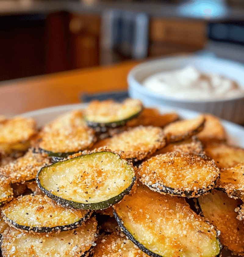 Ensure the pickle chips are well-coated with each layer (flour, egg, breadcrumbs) to achieve a uniform crunch.