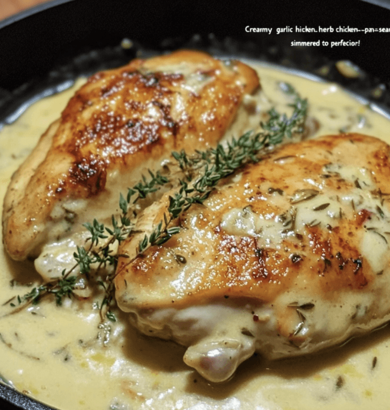 Crispy-Skinned Chicken Breast in a White Wine Cream Sauce with Thyme, Garlic, and Lemon