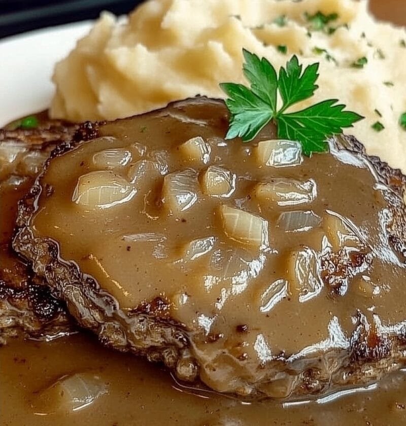 Whether you’re hosting a family gathering, a casual dinner with friends, or simply craving a comforting meal for yourself, this dish is a crowd-pleaser. The hearty hamburger steaks smothered in rich onion gravy will have everyone coming back for seconds. It’s comfort food at its finest.