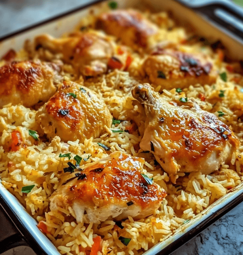- After 45 minutes, remove the foil and continue baking for an additional 15 minutes, or until the chicken is fully cooked and the rice is tender.