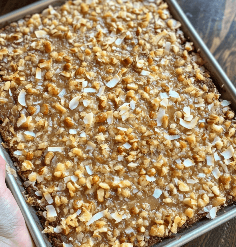 Last but not least, this recipe is a crowd-pleaser. Whether you’re hosting a birthday party, a potluck dinner, or simply treating yourself, this cake never fails to bring smiles to everyone’s faces. Its rich, chocolatey base paired with the luscious coconut-pecan frosting is a match made in dessert heaven.