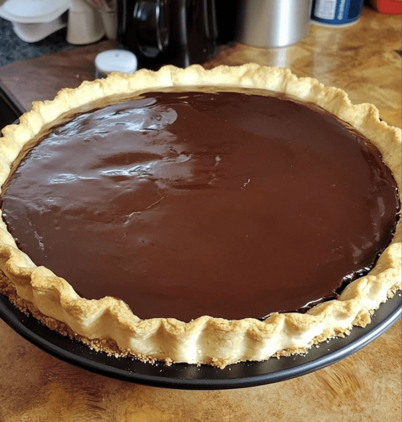Before serving, you can add a dollop of whipped cream and a sprinkle of cocoa powder on top of the pie for an extra touch of sweetness. Slice and enjoy!