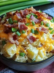 Loaded Baked Potato Salad takes all the delicious flavors of a loaded baked potato—crispy bacon, cheddar cheese, sour cream, and green onions—and combines them into a creamy, comforting potato salad. This dish is perfect for BBQs, potlucks, or as a side for any family dinner. It’s hearty, flavorful, and sure to be a crowd-pleaser!
