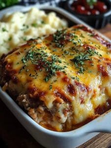 Meatloaf with Mashed Potatoes and Cheese is a comforting, hearty meal that’s perfect for any family dinner. The combination of savory meatloaf, creamy mashed potatoes, and melty cheese is simply irresistible. Customize it with your favorite seasonings or toppings and enjoy this classic comfort food!
