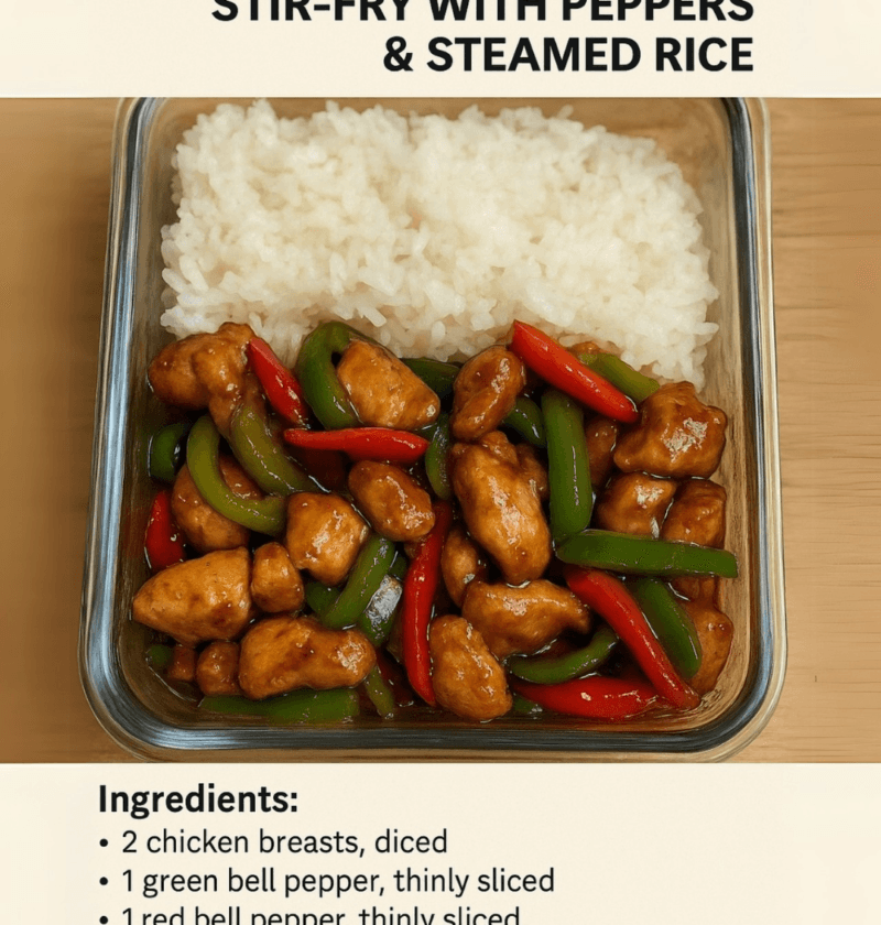 Sizzling Garlic Chicken Stir-Fry with Peppers & Steamed Rice