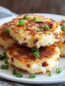 Southern Style Loaded Mashed Potato Cakes are a delicious way to use up leftover mashed potatoes or create a comforting side dish that’s crispy on the outside and fluffy on the inside. Loaded with cheese, bacon, and green onions, these potato cakes are perfect for breakfast, lunch, or dinner, and they can be served as an appetizer or side.