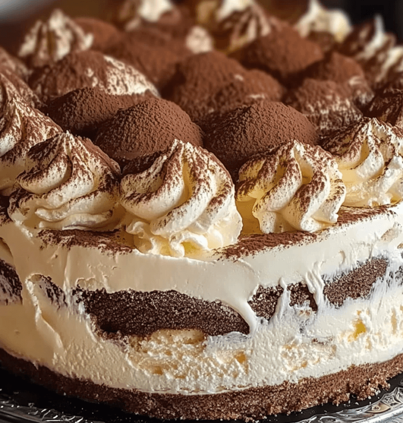 A luscious dessert that combines the rich flavors of tiramisu with the creamy goodness of ice cream. This cake features layers of velvety ice cream, coffee-soaked ladyfingers, and a mascarpone cheese mixture, topped with cocoa powder.