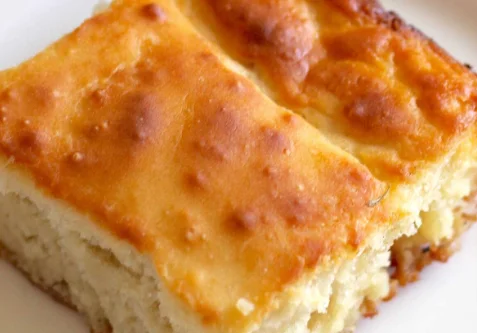 Once the cake is fully baked, remove it from the oven and allow it to cool for about 10 minutes. Using the handle of a wooden spoon or a similar object, poke holes all over the cake, making sure they’re evenly spaced across the surface.